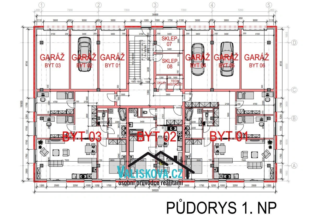 Dovolujeme si Vám nabídnout novostavbu bytu dispozičně 4+kk č. 1 ( 116 m2 + zahrada 218 m2 ) v bytovém domě v Holešove ul. U letiště. - dispozice 4+kk ( 116 m2 ) -vlastní zahrada 218 m2 průchozí z kuchyně i pokojů - parkovací stání v ceně - vlastní parkoviště - možnost garáže - interiéry dle přání v ceně - vysoký standard - výborná lokalita - zajištěné financování - skvělý právní servis notářská kancelář - developer s 30 letou tradicí na trhu Součástí ceny je - Vnitřní dělící stěny - vnější plášť zateplovací systém tloušťky 160mm - vnitřní štukové omítky - plastová okna a dveře s trojskly - kompletní instalace - vody, kanalizace, elektroinstalace a slaboproudých rozvodů - elektrické vytápění kombinace podlahového vytápění a otopných těles - elektrický ohřev vody - bojler - finální povrchové úpravy: keramické obklady a dlažby, vinylové podlahy, bílé malby - obložkové vnitřní dveře - bezpečnostní vstupní dveře - bílá výmalba - keramický obklad a dlažba anebo vinylové podlahy - vnitřní dveře - kompletní vybavení a zařízení koupelny Dodělání interiéru dle přání zákazníka dle standardů v ceně. Vnitřní dispozice lze také měnit na přání zákazníka. Byty se nachází v klidné lokalitě v blízkosti městský bazén, různá sportoviště, obchody včetně veškeré občanské vybavenosti. Doporučujeme prohlídku.