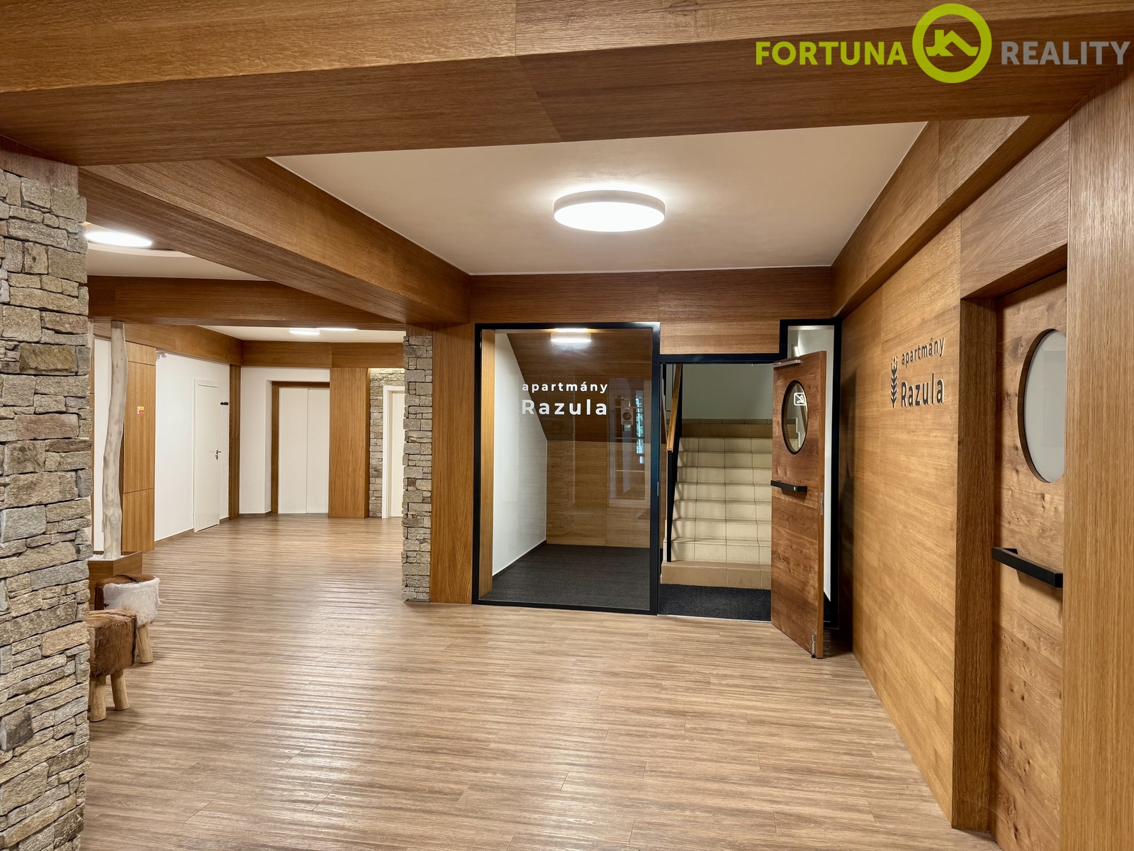 Exklusivně nabízíme k prodeji byt 2+kk o velkosti 58 m2 s balkonem 2 m2 a s vlastním venkovním parkovacím stání na vlastní parcele 12 m2. K bytu dále patří samostatný sklep o velikosti 4 m2. Byt je umístěn v bezbariérovém apartmánovém domě bývalého Hotelu Razula a to přímo vedle sjezdovky Ski-areálu RAZULA v Beskydech, v obci Velké Karlovice. V blízkém okolí se nachází mnoho dalších sjezdovek: Soláň, Kohůtka, Karolínka, hotel Horal a další, běžecké tratě, cyklostezky, bowling, lanové centra, squash, tenis, wellness, kryté bazény, koupaliště. Místo je ideální pro strávení celoroční dovolené anebo ke krátkodobému pronajímání turistům. V měsíčních poplatcích do SVJ je zahrnuta údržba venkovních prostranství a parkoviště. Dům má vlastního správce. V případě zájmu o krátkodobé pronajímání je možné domluvit a zajistit úklid apartmánu a případné ubytování turistů bez Vaší přítomnosti. Byt je nadstandardně vybaven a vybavení je součástí prodeje. V domě je výtah, lyžárna nebo kolárna, jedno parkovací místo před domem č. 23 na vlastním pozemku a půjčovna lyží. Ohřev teplé vody je řešen elektrickým bojlerem. Topení v bytě je zajištěno elektrickými nástěnnými přímotopy s termostatem ovládaným přes GSM modul telefonem. Vstupní dveře jsou bezpečností. V případě zájmu o prohlídku neváhejte kontaktovat makléře. Financování Vám zajistí náš hypotéční poradce.