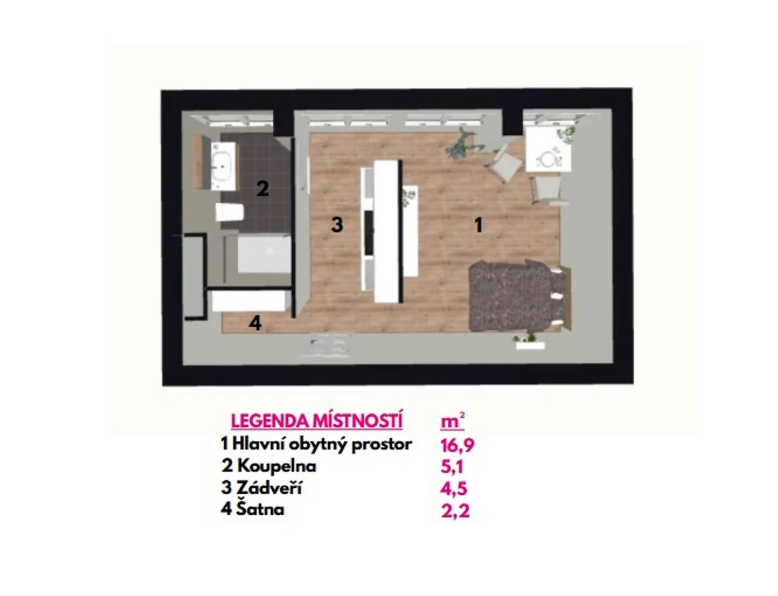 Prodej bytu 1+kk, 66m2 s terasou - Březnice u Zlína