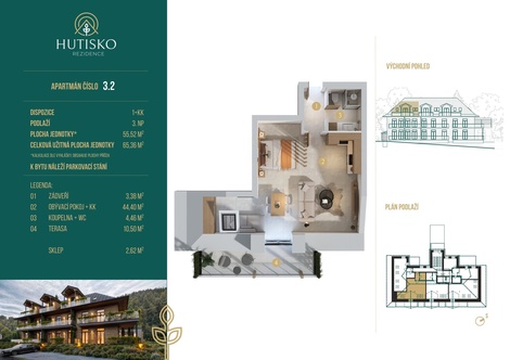 Prodej bytu 1+kk 64 m2 plus terasa 10,5m2 a sklep 2,62 m2, Hutisko-Solanec
