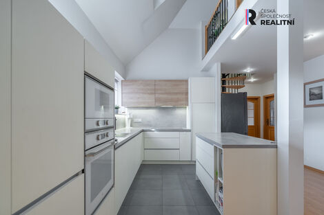 Nadstandardní byt 4+kk s galerií a terasou - Luhačovice, Masarykova ul. Výjimečná kombinace prostorného bydlení, soukromí a lázeňského klidu. Prodej prostorného a nadstandardně řešeného bytu o celkové ploše 180 m2 + terasa 7 m2, nacházejícího se ve 3. podlaží cihlového domu z roku 2000, Luhačovice - ul. Masarykova. Dům má pouze 5 bytových jednotek, byt zaujímá celé patro a poskytuje tak naprosté soukromí, klid a pocit rodinného domu. Dispozice a vybavení: Byt prošel kompletní renovací v roce 2016 a je připraven k okamžitému užívání bez dalších investic. Dispozice je rozdělena do dvou úrovní: Hlavní úroveň (3. NP): • předsíň • otevřená obytná místnost s jídelní částí, kuchyňským koutem a obývací částí • pokoj • ložnice se šatnou • koupelna s vanou a toaletou • samostatné WC • prádelna + prostor pro domácí práce • terasa orientovaná jihovýchodně Galerie nad bytem: • pokoj • koupelna se sprchovým koutem a WC • otevřená galerie s knihovnou a posezením K bytu náleží: • 2 sklepy v přízemí (2,52 m2 + 5,04 m2) • 2 soukromá garážová stání + 1 venkovní parkovací místo • společná kolárna v přízemí Interiér bytu působí velmi útulně, s domácí atmosférou a příjemným světlem díky orientaci bytu na všechny světové strany. Díky světlé orientaci, víceúrovňovému bytu a zeleni v okolí působí byt vzdušně a velmi příjemně. Vhodné jak k trvalému bydlení, tak jako lázeňský apartmán pro víkendové nebo rekreační využití. Umístění v rámci Luhačovic: Ulice Masarykova patří k vyhledávaným lokalitám města - pár minut chůze od lázeňské kolonády, parků, restaurací a kulturního centra avšak v klidné části Luhačovic. • centrum města - cca 5 minut pěšky • lázeňský park a prameny - cca 7 minut • přírodní stezky, cyklotrasy, les - do 300 m Byt nabízí ideální polohu pro ty, kteří hledají kombinaci městského komfortu a klidu přírody. Luhačovice - město pohody a energie: Luhačovice jsou čtvrté největší lázně v Česku a největší moravské lázeňské město. Nabízejí jedinečnou atmosféru - architekturu Dušana Jurkoviče, lázeňské parky, kolonády i minerální prameny s léčivými účinky. Město má ideální mikroklima - čistý vzduch, zelené okolí Vizovických vrchů a přírodní rezervace Bílé Karpaty. Pro obyvatele i návštěvníky město nabízí: • bohatý kulturní život (festivaly, koncerty, kolonáda) • široké možnosti relaxace, wellness a lázeňských služeb • výborné restaurace, kavárny, cukrárny • kompletní občanskou vybavenost (ZŠ, MŠ, pošta, obchody, lékaři) • pestré sportovní vyžití: turistika, cyklostezky, koupaliště, tenis Luhačovice jsou místem, kde se snoubí historie, klid a zdravý životní styl - ideální jak pro aktivní páry a rodiny, tak pro ty, kteří hledají odpočinek a duševní pohodu. Byt je připraven k prohlídkám po předchozí domluvě. "Tento byt není jen místem k bydlení - je to prostor, který dýchá klidem, světlem a harmonií lázeňského města."