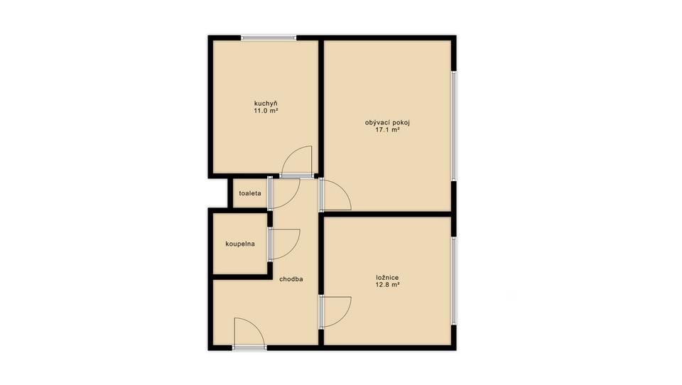 Pronájem prostorného bytu 2+1 s lodžií, ulice Zborovská - Zlín