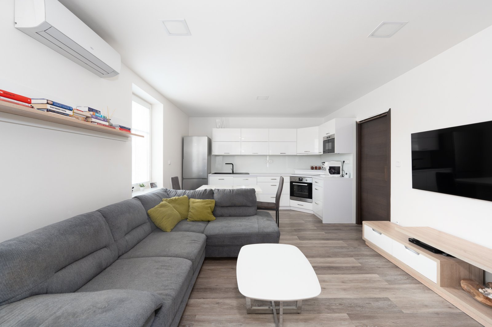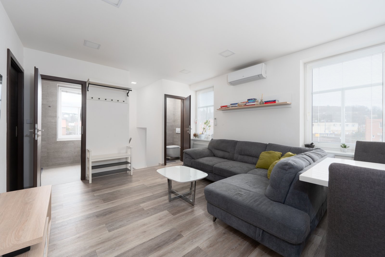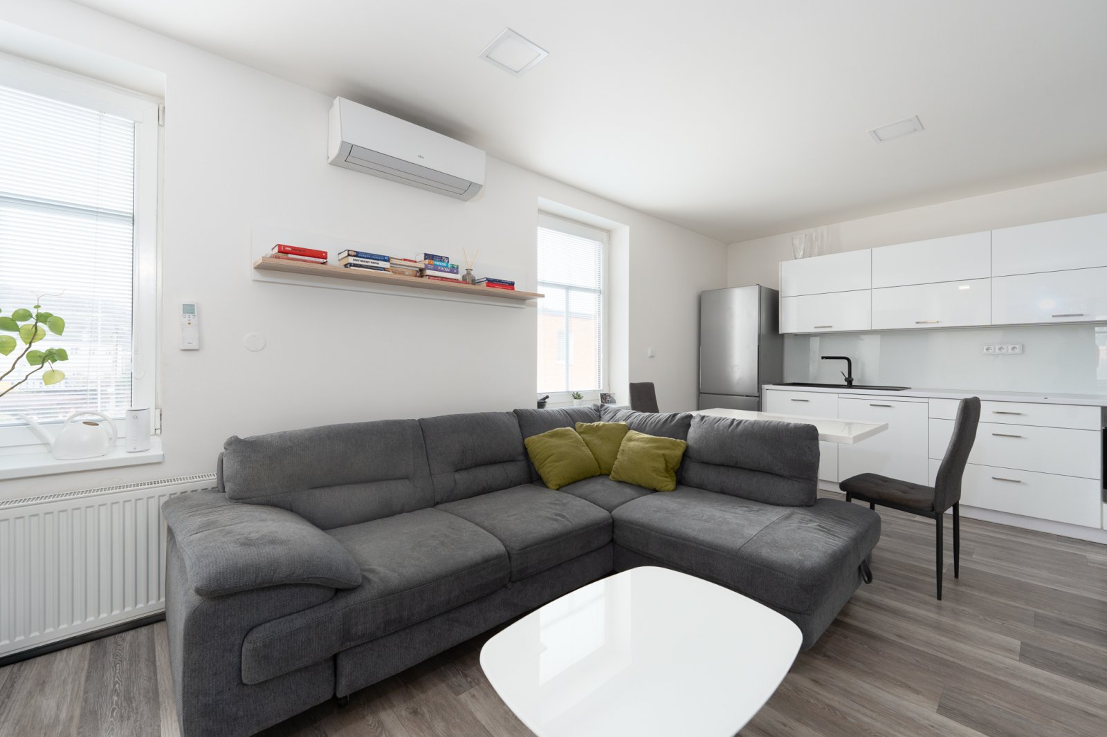 Nabízíme k prodeji byt o dispozici 3+kk ve vyhledávané lokalitě Zlín - Zálešná. Byt prošel kompletní rekonstrukcí před cca 11 lety a je ve velmi dobrém technickém stavu bez nutnosti dalších investic. V rámci rekonstrukce byly provedeny kompletně nové rozvody elektřiny a vody, nová koupelna se sprchovým koutem, samostatné WC i kuchyně, byt je zateplený zevnitř. Kuchyňská linka s vestavěnými spotřebiči značky Whirlpool, mezi které patří mikrovlnná trouba, horkovzdušná trouba, myčka na nádobí a indukční varná deska. Kuchyň je prakticky řešená a přirozeně navazuje na hlavní obytnou část bytu. Byt nabízí dva samostatné pokoje, které lze využít jako ložnici a dětský pokoj či pracovnu. Koupelna je vybavena sprchovým koutem, kvalitní sanitou značky Laufen a jsou zde připravené rozvody na pračku i sušičku. WC je samostatné, se závěsným systémem Geberit a sanitou Laufen. Velkým benefitem bytu je vysoce výkonná klimatizace značky Fujitsu, která umožňuje nejen chlazení, ale i vytápění a komfortně obslouží hlavní obytný prostor, dětský pokoj i ložnici. K bytu náleží také parkovací stání a zahrada.