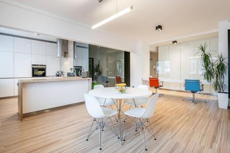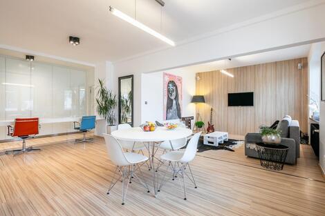 Pronájem bytu 2+kk s terasou v centru Zlína. Světlý prostorný byt o rozloze 59 m2 se nachází v 7. NP moderní budovy s výtahem. V hlavní místnosti s…