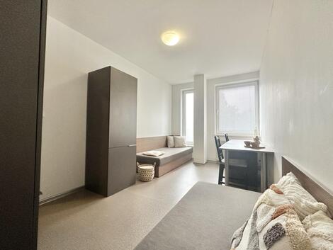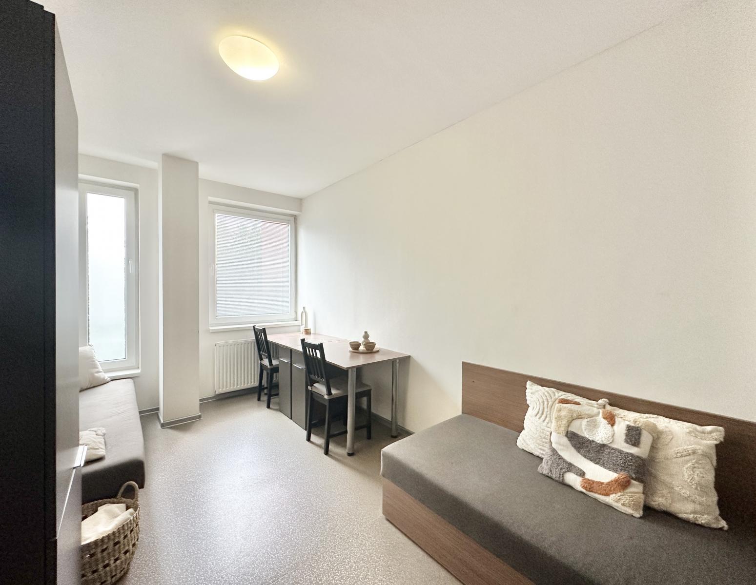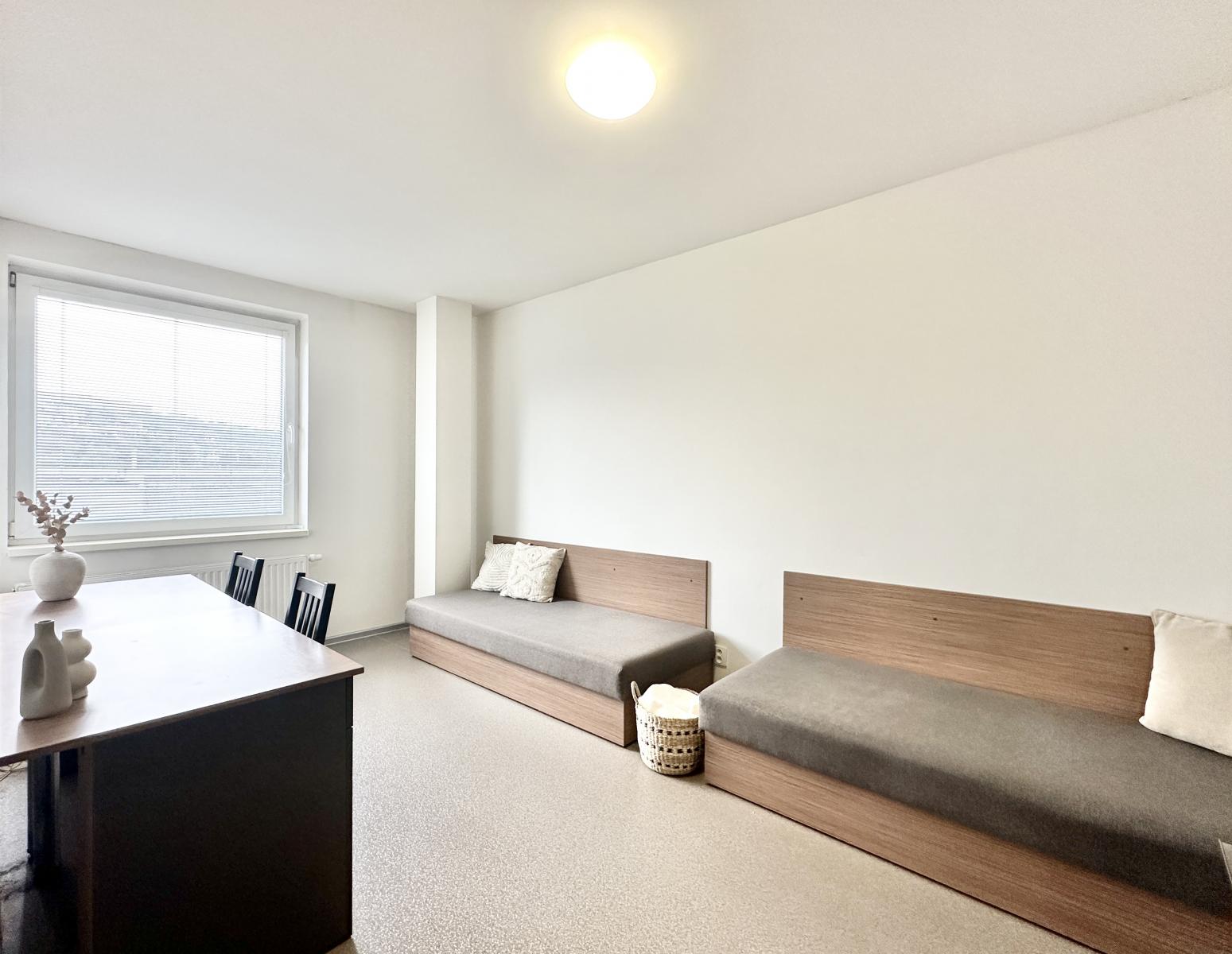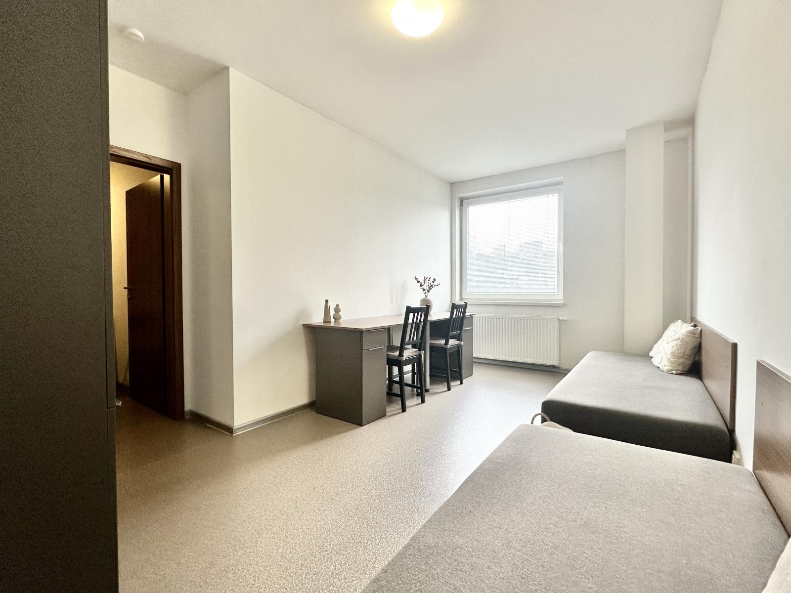 Nabízíme Vám k pronájmu byt 2+1 v centru Zlína na ulici Dlouhá. Nachází se v domě, kde je nyní 10 obsazených bytů pro studenty. Byt má podlahovou plochu 40,81 m2 a je volný k nastěhování ihned. Skládá se ze dvou neprůchozích pokojů, kuchyně s kuchyňskou linkou, lednicí a elektrickým vařičem a koupelny se sprchovým koutem. Pračku lze využít společnou. Smlouva se uzavírá minimálně na 1 rok. Domácí zvířata a kola do domu nesmí, v domě se nekouří. Byt se nabízí vybavený, vlastní nábytek není možný. Celý dům je ve vlastnictví obchodní společnosti s dlouholetými zkušenostmi s pronajímáním prostor, je čistý a ve skvělém stavu. Bez parkování. Garantujeme příjemné a bezproblémové prostředí, dodržování smlouvy, korektní a slušné jednání. Nájemné činí 14.200 Kč, paušální platba za služby (el. energie, spotřeba vody, topení a internet) pro čtyři osoby 4.600 Kč, pro dvě osoby 3.000 Kč. Vratná kauce ve výši jednoho nájmu a služeb, provize jeden nájem a služby. Pokoje lze též ke spolubydlení pronajmout jednotlivě, info o ceně poskytnu.