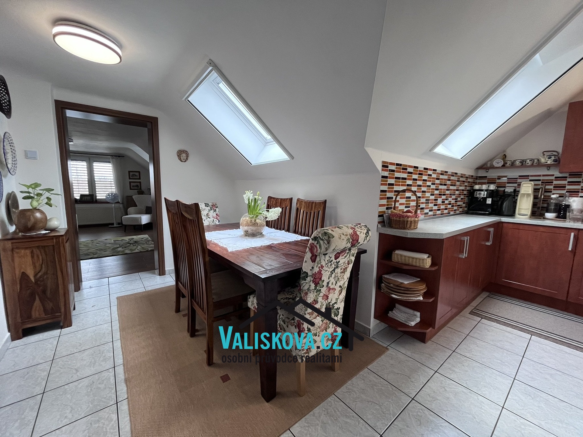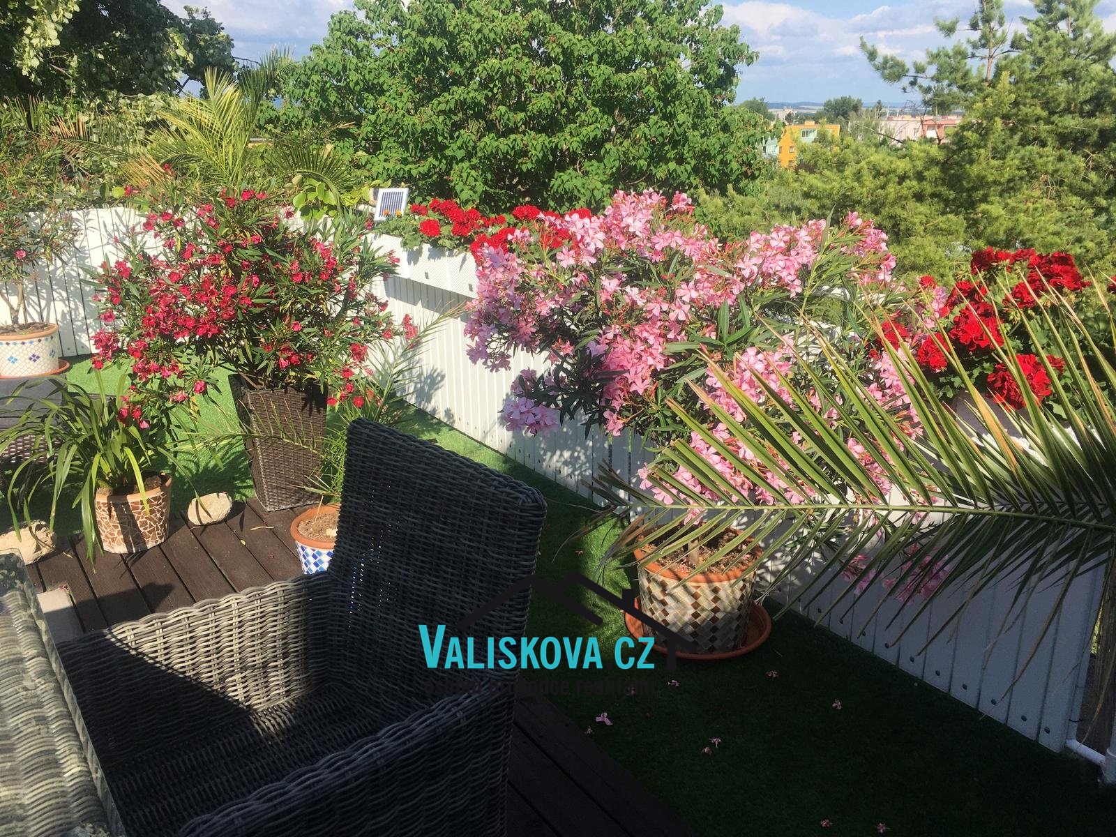 Prodáváme prostorný a světlý byt 4+1 v klidné lokalitě K Terezovu v Kroměříži. Tento pohodlný byt o užitné ploše 114 m2 se nachází ve velmi dobrém stavu a disponuje terasou s výhledem. Na třetím patře cihlové budovy se nachází prostorný obývací pokoj s kuchyní, tři ložnice, koupelna a samostatné WC. Po rekonstrukci nabízí byt moderní vybavení a útulnou atmosféru. K odpočinku slouží 60m2 terasa. Plastová trojkřídlá okna a vstupní dveře na terasu jsou opatřeny venkovními elektricky ovládanými žaluziemi se sítěmi proti hmyzu. Střešní okna jsou vybavena venkovními markýzami, vnitřními roletkami, a sítěmi proti hmyzu. V letním období tak zajišťují komfort, bez nutnosti klimatizace. V ložnici je malá šatna a v bytě je komora s oknem. Nad části dvou ložnic a vstupní halou je prostorná půda. K bytu také patří parkovací místo u domu a zahrada, kde si můžete odpočinout. Tato nemovitost je skvělou volbou pro rodinu hledající pohodlné bydlení v příjemném prostředí. Nenechte si tuto jedinečnou nabídku ujít!