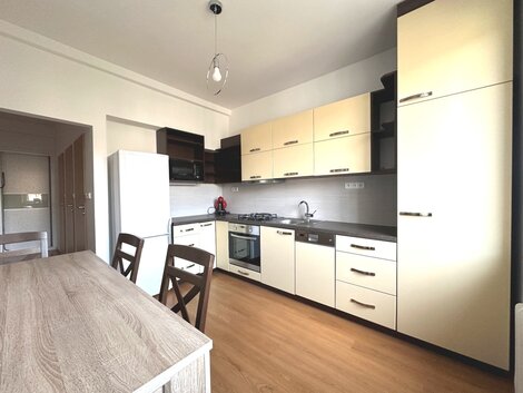 Nabízíme k pronájmu prostorný a velmi příjemný byt o dispozici 3+1, který se nachází ve 4. podlaží bytového domu na ulici Sokolská v samotném centru Zlína. Byt je ve velmi dobrém stavu a připraven k nastěhování od 1. 6. 2026. Dispozice bytu: - prostorná vstupní chodba s vestavěnými skříněmi a botníkem - koupelna s vanou a umyvadlem - samostatné WC - světlá kuchyň plně vybavená spotřebiči - plynový sporák, trouba, digestoř, mikrovlnná trouba, lednice, myčka a jídelní stůl s židlemi pro 4 osoby - praktická spíž s pračkou - dva samostatné neprůchozí pokoje, jeden s vestavěnými skříněmi - prostorný obývací pokoj se sedací soupravou, úložnými skříněmi a prostorem pro TV - k bytu náleží také velký zděný sklep se samostatným vstupem Lokalita: Byt se nachází ve vyhledávané lokalitě v centru Zlína s kompletní občanskou vybaveností v docházkové vzdálenosti - obchody, restaurace, školy, školky, zastávky MHD i další služby. Platební podmínky: - nájemné: 16.800,- Kč/měsíc - zálohy na energie: 5.200,- Kč/měsíc - vratná kauce: 22.000,- Kč - provize RK: 22.000,- Kč Byt je ideální pro pár nebo rodinu, kteří hledají komfortní bydlení v centru města s veškerou občanskou vybaveností na dosah. V případě zájmu o více informací nebo domluvení prohlídky mě neváhejte kontaktovat. Těším se na vás, Alena Hlavinková!