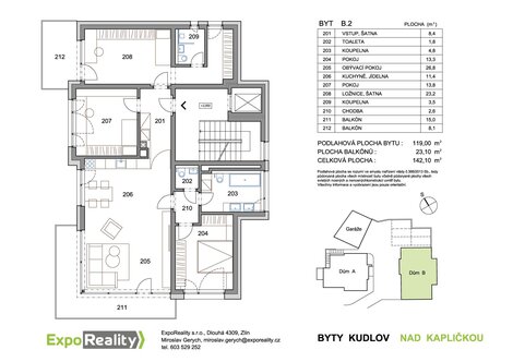 Příjemné bydlení nedělá jen byt sám o sobě, roli hraje také lokalita a prostředí kolem nás. Projekt "Byty nad Kapličkou" ve dvou novostavbách nabízí podmanivou atmosféru domova s důrazem na soukromí a klid v malebném prostředí Kudlova ve Zlíně. Tato lokalita splní vaše představy o dokonalém bydlení. Stavba byla zahájena v únoru 2026, dokončení projektu se očekává v říjnu 2027. Projekt zahrnuje šest nových bytových jednotek s dispozicemi 4+KK. Byty jsou koncipované tak, aby oslovily jak mladé lidi hledající vlastní bydlení, tak současné obyvatele této vyhledávané lokality. Vše je navrženo tak, aby bylo bydlení nejen příjemné a praktické, ale i komfortní a moderní. Velká okna zajistí dostatek světla, a každý byt bude prosluněný a vzdušný. Samozřejmostí je nadstandardní terasa u každého bytu. Ke každému bytu je možnost dokoupit samostatnou zděnou garáž, parkovací stání. Konkrétně byt B2 ve 2. nadzemním podlaží o dispozici 4+KK a podlahové ploše 119 m2 se dvěma balkony 22,1 m2 a sklepem 3,4 m2 poskytuje k užívání plochu celkem 145 m2. Pohodlí budoucích obyvatel zvyšuje osobní výtah z garáží v suterénu do všech podlaží. Možnost rozdělení na dva samostatné byty (1+kk a 3+kk). Skvělá příležitost pro vícegenerační bydlení nebo samostatný atelier. Hlavní přednosti projektu: * Exkluzivita: pouze jeden byt na patře a moderní výtah. * Variabilita: možnost rozdělení na dva byty (1+kk a 3+kk). * Technologie: v ceně bytu klimatizace, venkovní žaluzie, plynový kotel, podlahové vytápění = nízké náklady na bydlení. * Parkování: garáž a parkovací stání. * Lokalita: příroda na dosah, MHD a školka „za rohem“, centrum města do 7 min. Každý detail v tomto bytě byl pečlivě promyšlen a vybírán s důrazem na kvalitu. Moderní hliníková okna s praktickými předokenními žaluziemi garantují pohodlí a soukromí. O příjemnou teplotu v horkých i chladných dnech se postará efektivní kombinace vlastního plynového kotle a tepelného čerpadla. Nádherně sladěné vinylové podlahy a luxusní dlažba tvoří nadčasový estetický dojem. Koupelna a WC jsou vybavené kvalitními zařizovacími předměty, které splní požadavky i těch nejnáročnějších klientů. Navíc můžete využít možnost klientských změn a upravit detaily uspořádání koupelny a WC podle svých osobních preferencí, čímž si přizpůsobíte prostor přesně svým představám. Vnitřní dveře s impozantní výškou 210 cm dále umocňují pocit velkorysého prostoru. K pohodlí a komfortnímu bydlení přispívají i moderní datové rozvody a klimatizace. Kudlov se ve Zlíně chlubí ideální kombinací klidného rezidenčního bydlení s výhodami městského života. V bezprostřední blízkosti, pouhých 100 metrů, naleznete obchod s čerstvými potravinami a školku. Bezproblémovou dostupnost centra Zlína, které je vzdáleno jen 7 minut jízdy, zabezpečuje zastávka MHD vzdálená 150 metrů. Navíc, lokalita nabízí blízkost nádherné přírody a lesů, které jsou ideální pro milovníky procházek, běhu nebo cyklistiky, a poskytují tak úžasnou příležitost pro relaxaci a aktivní odpočinek.