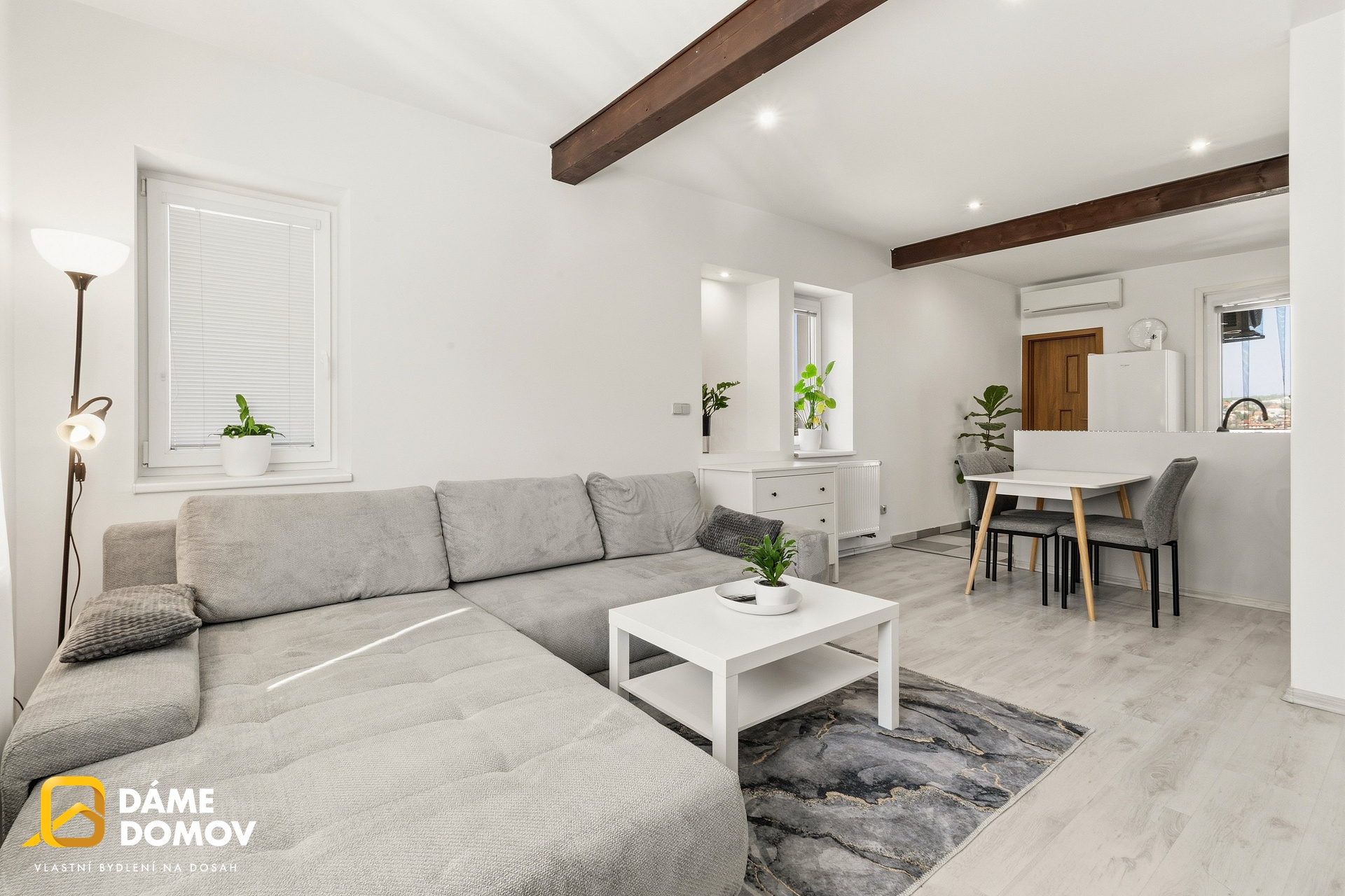 Nabízíme Vám k pronájmu od 1. 6. 2026 krásný, velmi prostorný, byt 2+kk ve Zlíně na ul. Svatopluka Čecha. Nachází se v rekonstruované vile na Podhoří, s balkónem a výhledem na Zlín. K dispozici je rovněž sklep a vlasní parkovací stání. Samotný byt je situován v prvním patře (2. NP), má dva prostorné pokoje, kuchyňský kout, koupelnu s WC, komoru. Pronajímá se bez nábytku na fotografiích, pouze s kuchyňskou linkou se spotřebiči a vestavěnými skříněmi. Pro ještě lepší komfort je vybaven také klimatizací. K dispozici máte velkorysých cca 84 m2 + sklep + parkovací stání. Služby k bytu zahrnují spotřebu všech energií (mimo klimatizace), parkovací stání, internet, úklid společných prostor. K dispozici je také kryté venkovní posezení - pergola a zahradní domek - kolárna. Lokalita na ul. Sv. Čecha Vám poskytne dostatek klidu a soukromí, zároveň se nachází blízko centra města s dosahem všech služeb. Nad domem je park, les a stezka na Maják - příjemná místa k relaxaci, procházce apod. Ideální pro jednu až dvě pracující osoby bez zvířat, nekuřáky. Nájemné činí 14.500,- Kč, paušální úhrada za spotřebu energií 4.000,- Kč. Nájemce hradí vratnou jistotou ve výši 20.000,- Kč a provizi realitní kanceláři. Majitel si vyhrazuje právo upřednostnit zájemce dle vlastních kritérií. V případě Vašeho zájmu nás neváhejte kontaktovat pro bližší informace. Radek Motyka & Dáme domov
